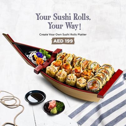 Come enjoy the best sushi in Dubai and beyond! Seven days a week, you can dine-in lunch and dinner, takeaway or sushi delivery at your door TODAY!